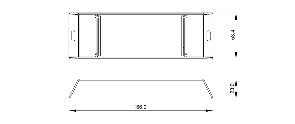 Dimensioni: 166mm x 53,4mm x H 23mm