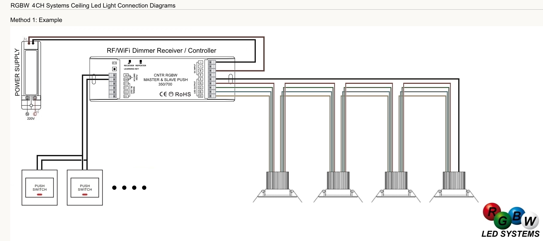 - Collegare R-G-B-W in sistemi DIMM (R=DIMM, G=DIMM, B=DIMM, W=DIMM), i 4 canali lavorano in sincro.